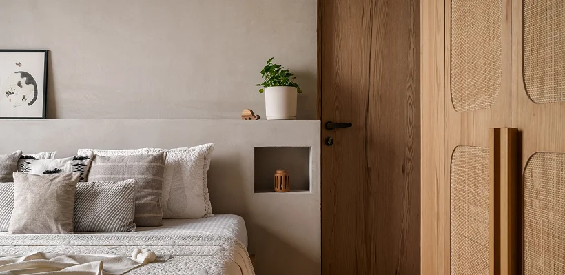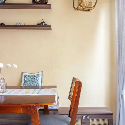 Cloudy, matte, and hand-troweled, walls that capture light in gentle motion and texture.